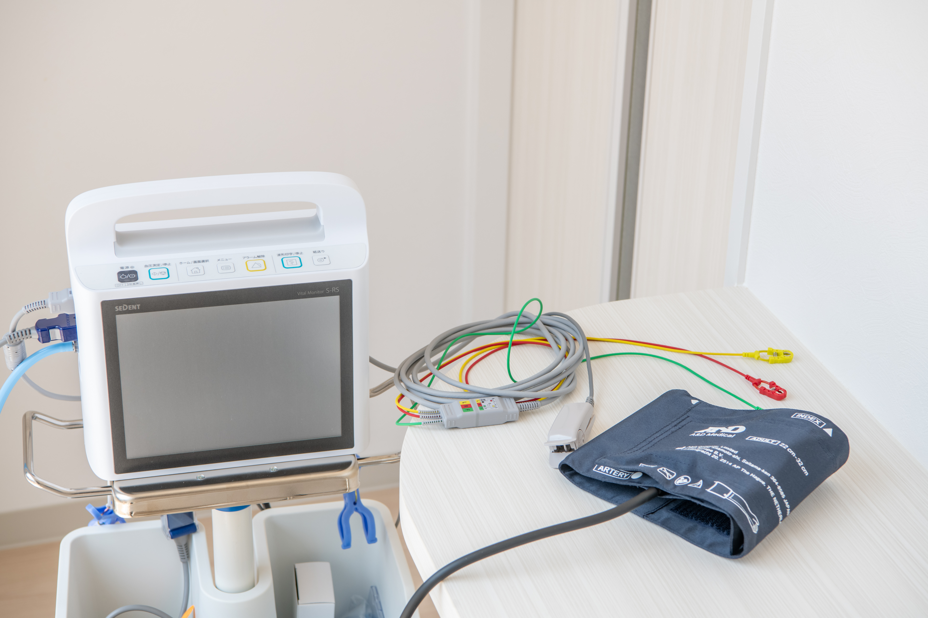 治療中の緊急事態に備えて、AED・生体情報モニターを設置しています。